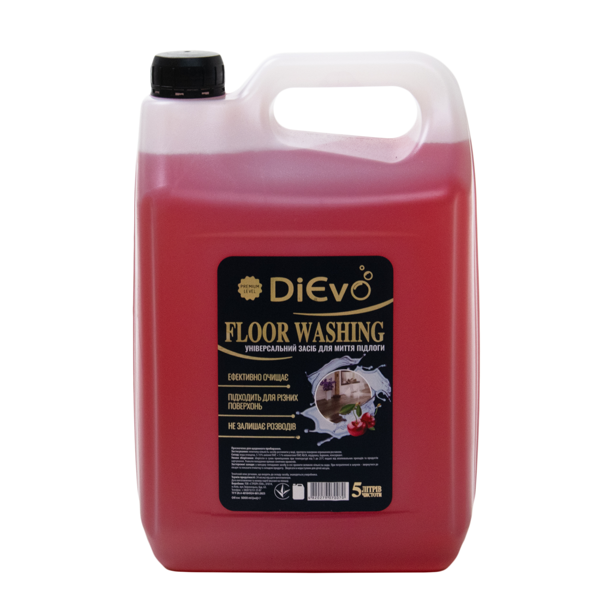 Засіб для миття підлоги Вишня Premium 5л ТМ DiЄvo призначений для використання у закладах громадського харчування та у побуті. Його збалансована формула особливо ефективно проявляє себе при митті масляних і жирових забруднень. Засіб може використовуватися на більшості матеріалів. Засіб рекомендований для ручного миття підлоги. Залишає приємний аромат.