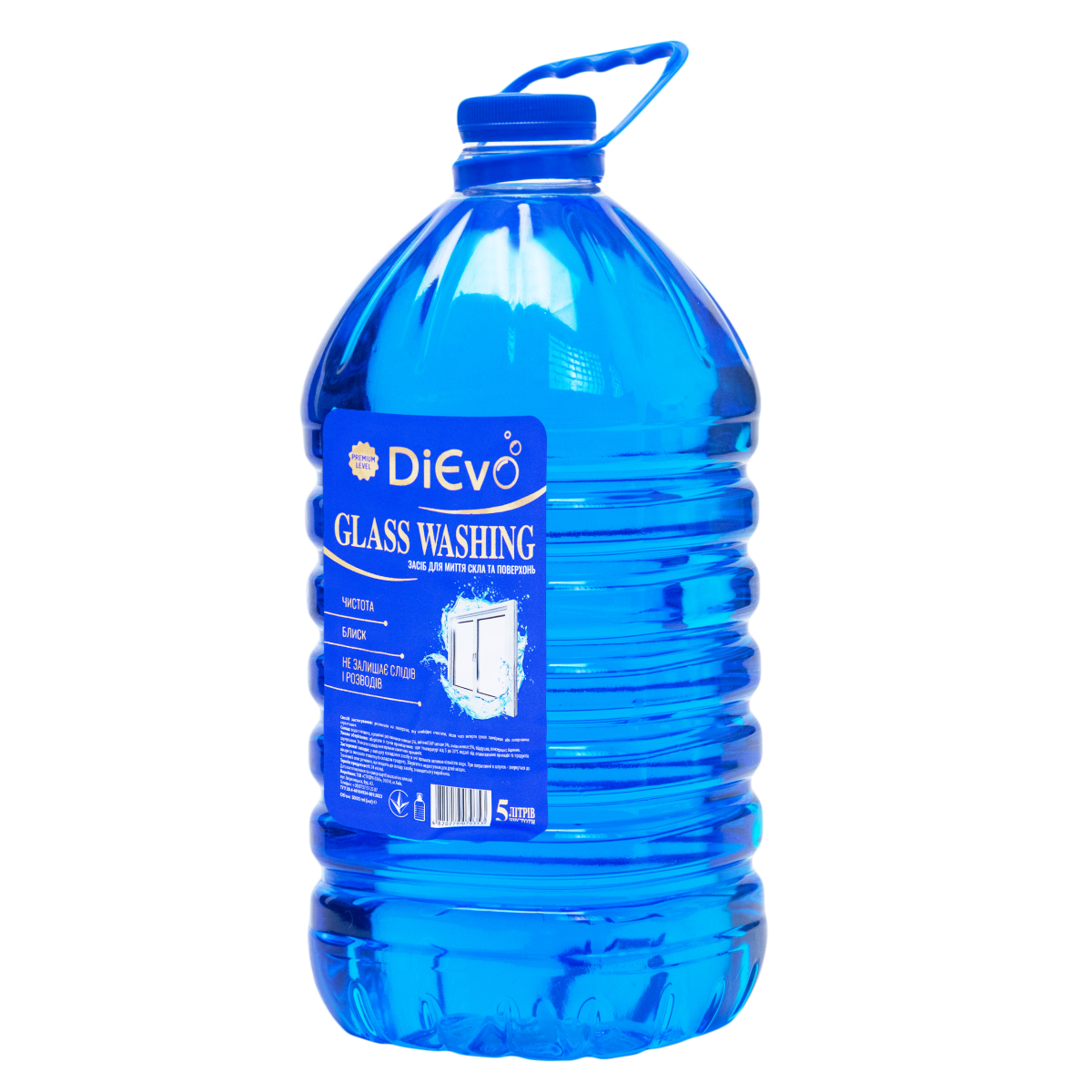 Засіб для миття скла Premium ПЕТ 5л ТМ DiЄvo призначений для миття віконного, вітринного, автомобільного скла, дзеркал, кахлю, хромових поверхонь, поверхонь із нержавіючої сталі.