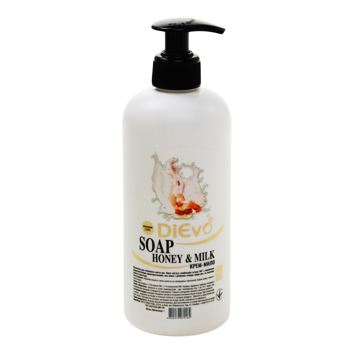 Крем-мило Молоко та мед Premium з дозатором 500мл ТМ DiЄvo