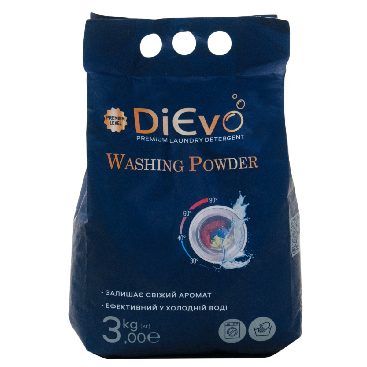 Порошок для прання універсальний Premium 3кг ТМ DiЄvo призначений для прання всіх типів тканин. Відмінно відпере забруднення, не пошкоджуючи структуру волокон. Видаляє неприємні запахи, відновлює свіжість кольору тканини. Спеціальна формула засобу дозволяє отримувати відмінний результат навіть при пранні тканин, що вимагають особливих умов прання при низьких температурах 30-40°C. При підвищенні температури прання дія порошку посилюється. Підходить для використання в машинах будь-якого типу і ручного прання.